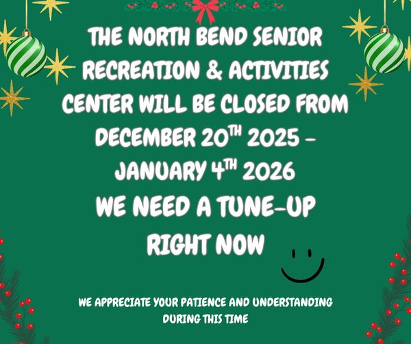🎄 The Senior Center will be taking a little winter break from December 20 through January 4 to refresh, reorganize, and get ready for a bright new year!