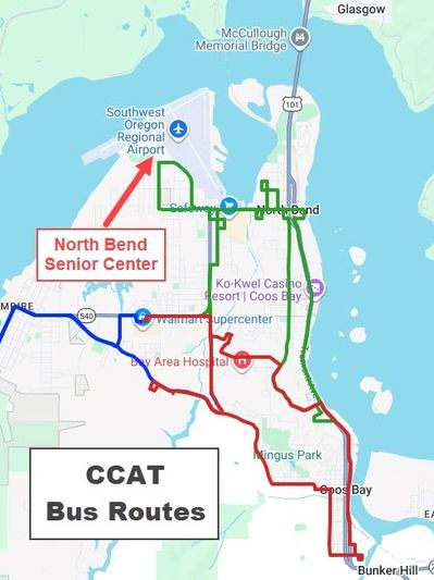 The North Bend Senior Center is located near the North Bend Airport and right across from the new DHS building on Airport Lane.